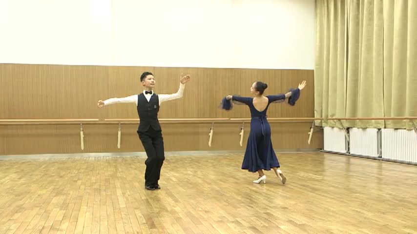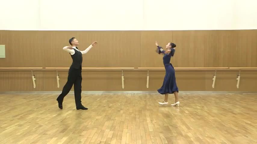 5.直行追步向右迂回步结束 Progressive Chasse to Right and Weave End